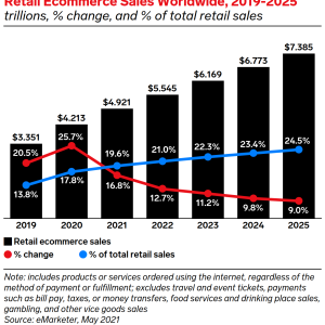 Fast-forward to 2020, when the COVID-19 pandemic hit the world and governments-imposed lockdowns, the only way for retailers to stay in business was to sell online and companies that already had an online presence became more popular. E-commerce sales have grown steadily, as seen from the graph below. From 2019 pre-pandemic to 2021 post-pandemic, online sales have increased by US$1.57 trillion, and it seems like this trend will continue for the next few years.